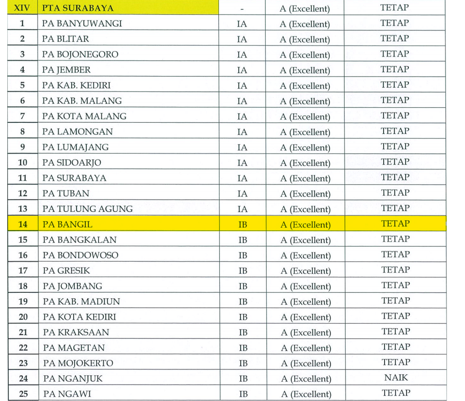Pengadilan Agama Bangil senantiasa meningkatkan kualitas pelayanan prima terhadap para pencari keadilan. Pada tahun ini PA Bangil berhasil mempertahankan Akreditasi Penjaminan Mutu ke-II dengan predikat A (excellent). Pada periode ke-I PA Bangil juga menerima predikat yang sama yakni A(excellent). Konsistensi ini merupakan komitmen PA Bangil dalam memberikan pelayanan prima.